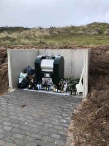 Prioriteit voor ons is en blijft ongedierte-bestreiding en daarom het goed toegankelijk zijn van de afvalcontainers. Afgesproken is dat de Gemeente Vlieland – ondersteund door een automatisch meetsysteem – ervoor zorgt dat de huurders en eigenaren van de duinhuisjes van Duinkersoord, Vliepark en Ankerplaats altijd hun afval kwijt kunnen. We hebben daarbij met name aandacht gevraagd voor de capaciteit op wisseldagen. Op die dagen zelf zouden de afvalcontainers leeg genoeg moeten zijn zodat alle vertrekkende gasten hun afval kwijt kunnen en dat er dus geen afvalzakken naast de containers geplaatst hoeven te worden. Dat leidt immers direct tot ongedierte overlast. Ook hebben we aangegeven dat het verstandig zou zijn om op meer locaties glas- en papier containers te plaatsen omdat we anders verwachten dat gasten – ondanks intensieve communicatie – op de vertrekdag de flessen en dozen naast de restafval containers zullen plaatsten.