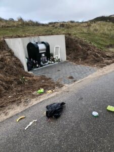 Dan de ervaringen van de afgelopen twee weken. Onderstaande foto’s van de restafvalplek bij de Ankerplaats van maandagochtend 4 januari (wisseldag) zeggen daarbij genoeg. Helaas is dit niet een incident. Een van de Ankerplaats eigenaren meldde ons bijvoorbeeld dat hij in twee weken tijd 3x de Gemeente Vlieland heeft moeten bellen: 2 keer omdat de papiercontainer bij hoek Badweg/Kampweg vol zat, en 1 keer omdat de restafval container bij Ankerplaats vol zat. Zelf hebben wij in november (toen het rustig was in het duin) op een wisseldag een volle container op de Badweg aangetroffen.